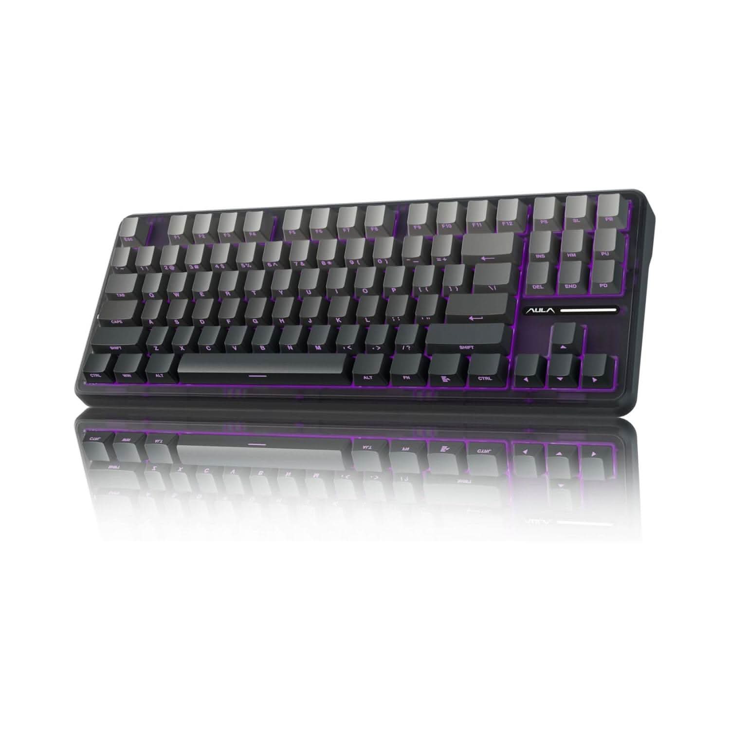 ã€Tri-mode Connection Keyboard】AULA F87 wireless mechanical keyboard works with Bluetooth, 2.4GHz wireless and USB wired connection, can connect up to five devices at the same time, and easily switch by shortcut keys or side button. F87 computer keyboard is suitable for PC, laptops, tablets, mobile phones, PS, XBOX etc, to meet all the needs of users. In addition, the rechargeable keyboard is equipped with a 4000 mAh large-capacity battery, which has long-lasting battery life.